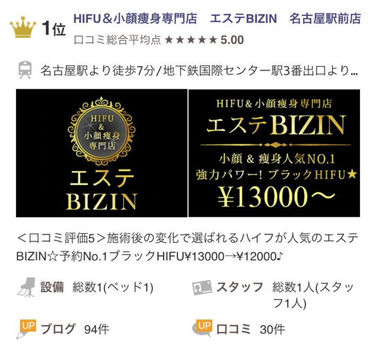 名古屋のエステサロン、エステBIZIN様の本店と2号店のプロデュース兼アドバイザーを担当。