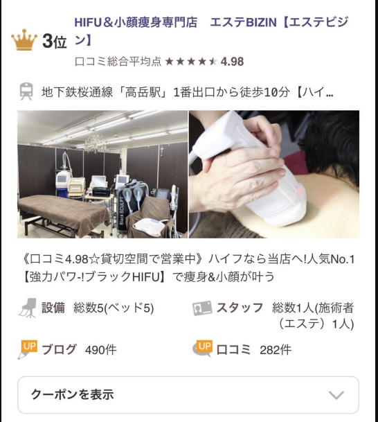 ホットペッパービューティーの“口コミランキング”で本店と2号店がそれぞれ1位と3位を獲得し、今まで1万5千円前後だった顧客単価を2.5倍に伸ばすことに成功しました。